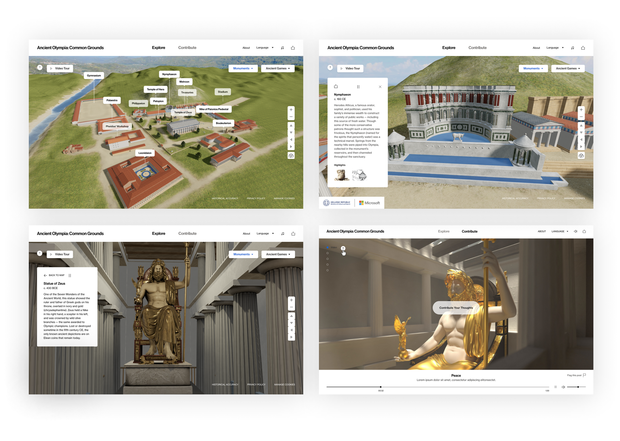 Ancient Olympia: Common Grounds is a collaboration between the Hellenic Ministry of Culture and Sports and Microsoft—using AI to digitally preserve and restore this rich site for future generations by bringing its structures and cultural impact to life like never before. The whole project includes three parts: a 3D web experience that let visitors access the ancient world from everywhere, an AR mobile experience that allows visitors to bring the past back to life in the location where the glory started, and a HoloLens XR experience that brings the experience to the next immersive level.