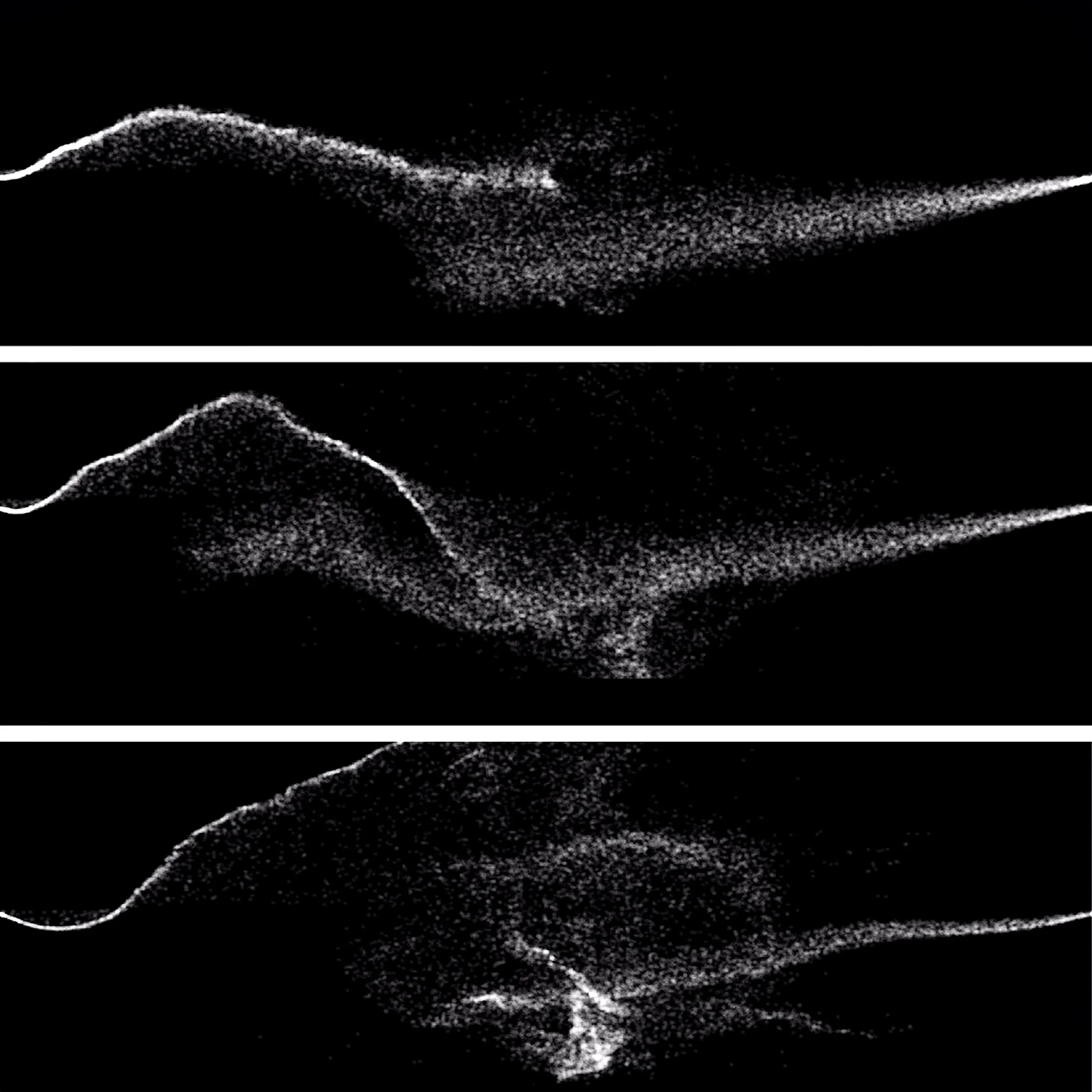 To simulate tide waves and eclipse of the moon, My partner and I designed a particle system in Processing and P5.js, added with steering behaviors, which would move and interactive with a flow field behind. The codes of tide and moon are basically the same while the only difference is that some of the particles movements were hidden in moon's code.